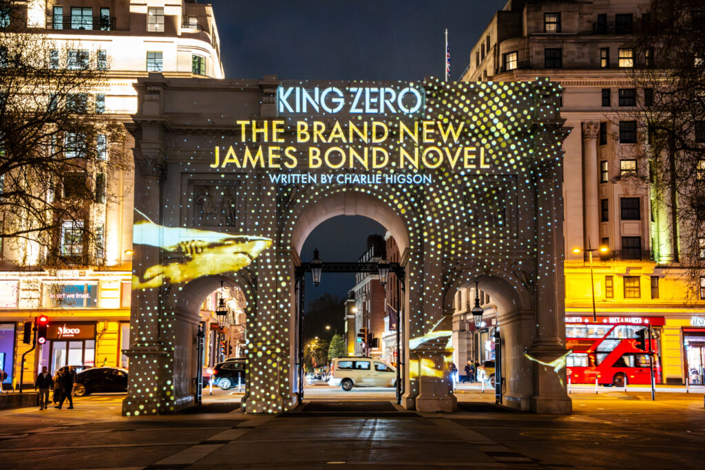 A slick announcement project projected a spring tease across iconic London landmarks as the world of King Zero was finally revealed as Bond, Higson and Fleming are back!
